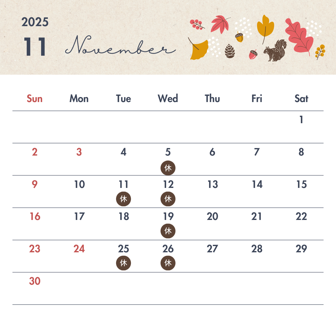 11月定休日のお知らせ